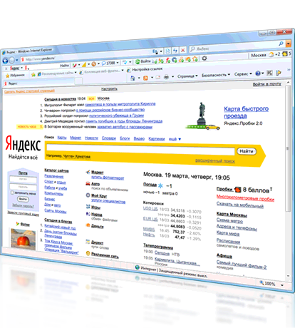 ![]() Internet Explorer - В новой версии браузера предложен обновлённый конфиденциальный режим просмотра страниц, а также специальный фильтр неблагонадежных сайтов – всё это сделает работу в Интернете безопасной. Веб-фрагменты позволяют смотреть, что нового появилось на интересных вам сайтах без перехода на них. Не делать лишних кликов также помогут информеры Погоды и Пробок – чтобы узнать погоде за окном и ситуации на дорогах в вашем городе, теперь достаточно просто взглянуть на панель браузера. Работать с текстом на странице стало удобно благодаря технологии акселераторов. Выделите адрес на странице, откройте акселератор Яндекс.Карт, и вы получите мини-карту с отметкой указанного места без перехода на сайт. Также можно выделить название итересующего товара и акселератор Яндекс.Маркета покажет необходимую информацию и позволит перейти к списку предложений данной модели одним кликом. Любой выделенный фрагмент текста можно отправить по почте или поискать в интернете или на сервисах Яндекса. Кроме того, можно быстро найти перевод или толкование выделенного слова. В поиске нужной информации на странице также поможет Яндекс.Бар: он подсветит искомые слова и автоматически прокрутит страницу к тому месту, где они находятся. Internet Explorer 8 с Яндекс.Баром умеет проверять орфографию. Встроенный модуль орфографии использует словарь русского языка, содержащий более 3 миллионов слов и словоформ. Автор: Microsoft | |
